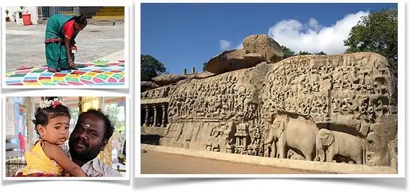 Das Felsrelief Arjuna’s Penance, das den Hindu-Mythos der Herabkunft des Ganges beschreibt, ist das größte Felsrelief der Welt und zieht viele Besucher an. Der dem Gott Shiva geweihte Küstentempel(SHORE-TEMPEL), einer der ältesten Steintempel im Süden des Subkontinents, ist das Wahrzeichen von Mahabalipuram und beeindruckt mit seiner Größe und majestätischen Erscheinung.